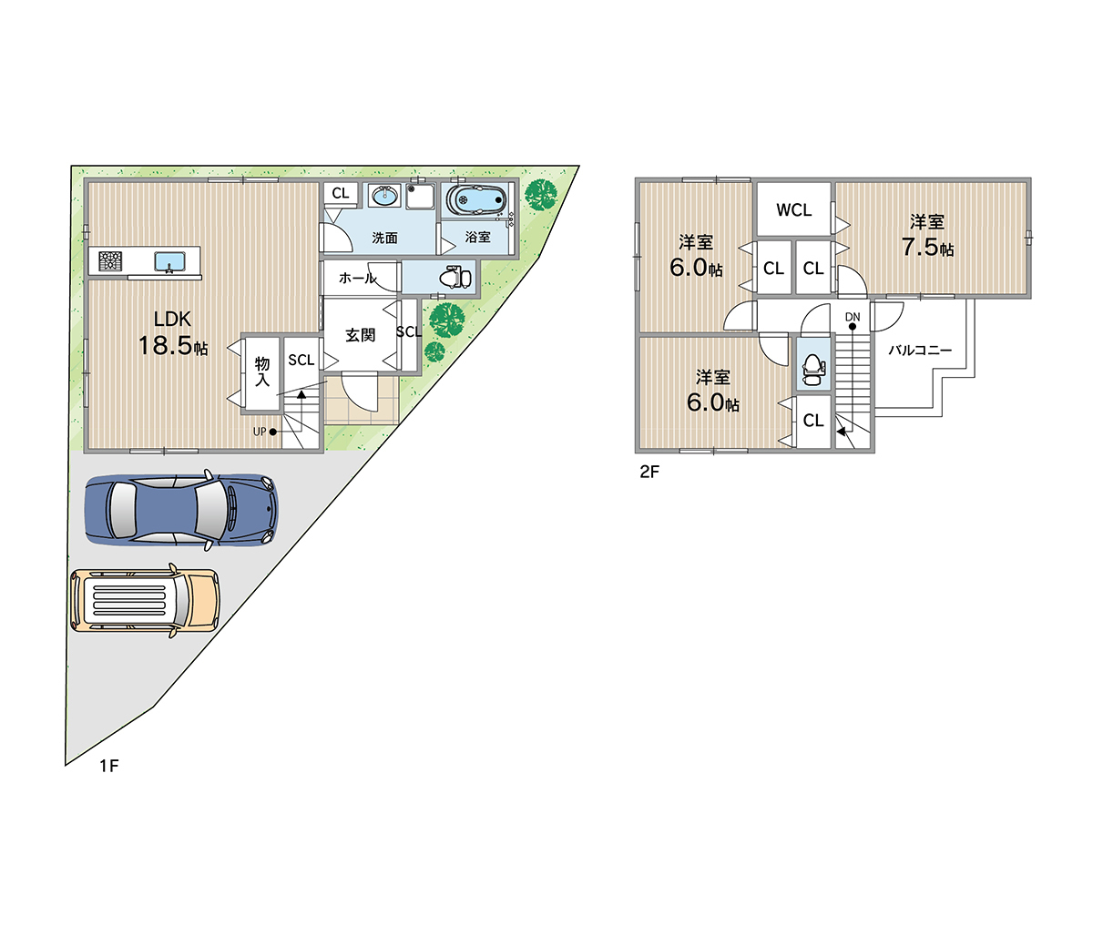 3LDK (LDK18.5帖 洋7.5・洋6・洋6) -