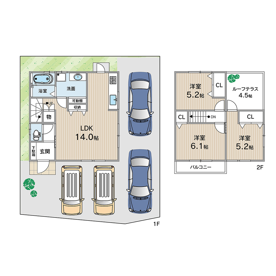 3LDK(LDK14.0・洋6.1・洋5.2・洋5.2) -