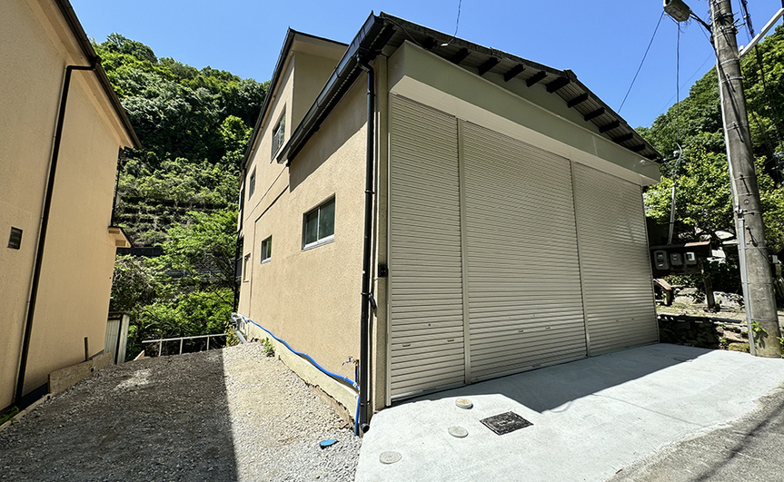 ・屋根工事・室内全面改装(居住用→事務所、倉庫仕様)・トイレ新設・手洗い新設・入口シャッター取り付け・外壁塗装 -