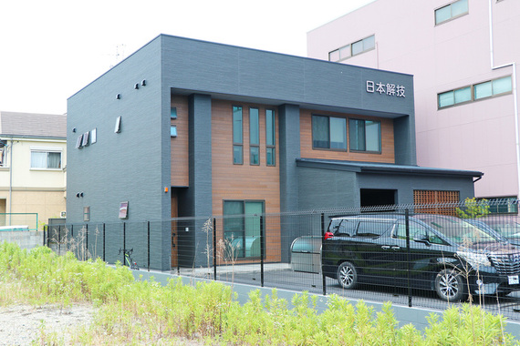 外観は濃いグレーのガルバリウム鋼板を使用しモダンな雰囲気のテナントビル。