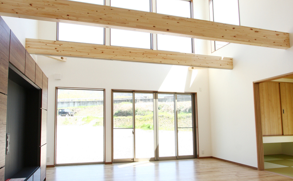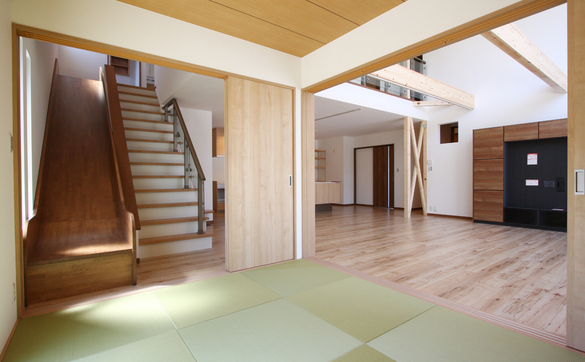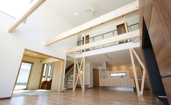 広い敷地を活かした広々リビング+大型吹抜け、滑り台のある室内など施主さんの要望を随所に盛り込んだ遊び心いっぱいの建物。