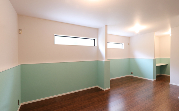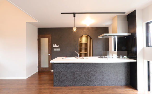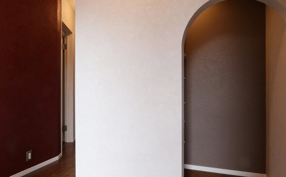 施主様のお好みに応じて貼り分けたクロスや、アーチ状の開口など印象的な住まいになりました。