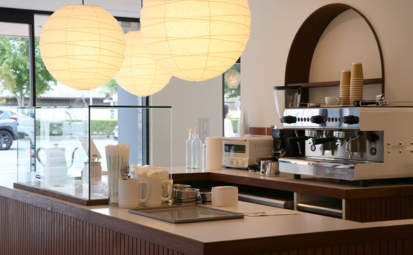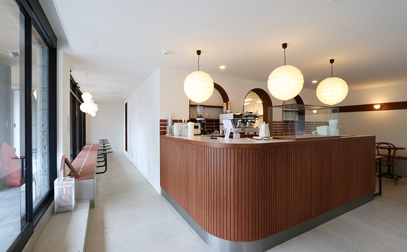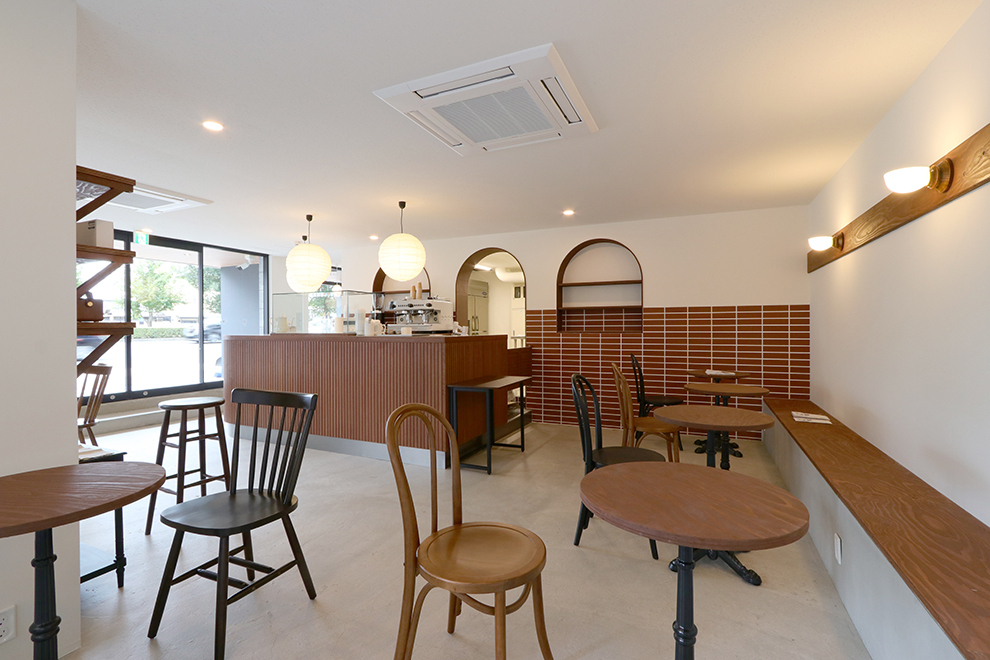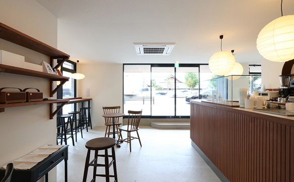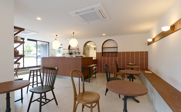打ちっ放しの土間と木の什器でオシャレな空間となっています。
